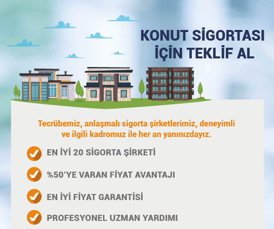 Konut Sigortası, evinizi veya belirli dönemlerde ikamet ettiğiniz yazlığınızı; deprem, sel, terör, yangın, hırsızlık, dâhili su, fırtına, vb. risklere karşı güvence altına alan bir poliçe türüdür. Konut Paket Sigortası, evinizi yangından yıldırıma, taşıt çarpmasından hırsızlığa, hatta elektronik eşyanıza gelecek zarara kadar güvence altına alır. Hem de geniş kapsamlı teminatlarla. Ayrıca poliçe süresi içinde hasar olmadığı takdirde (deprem hariç), yıllık konut priminde %10’dan %20’ye kadar indirimler uyguluyor. Konut Paket Sigortası‘yla aklınıza gelebilecek her şey güvence altına alıyor.